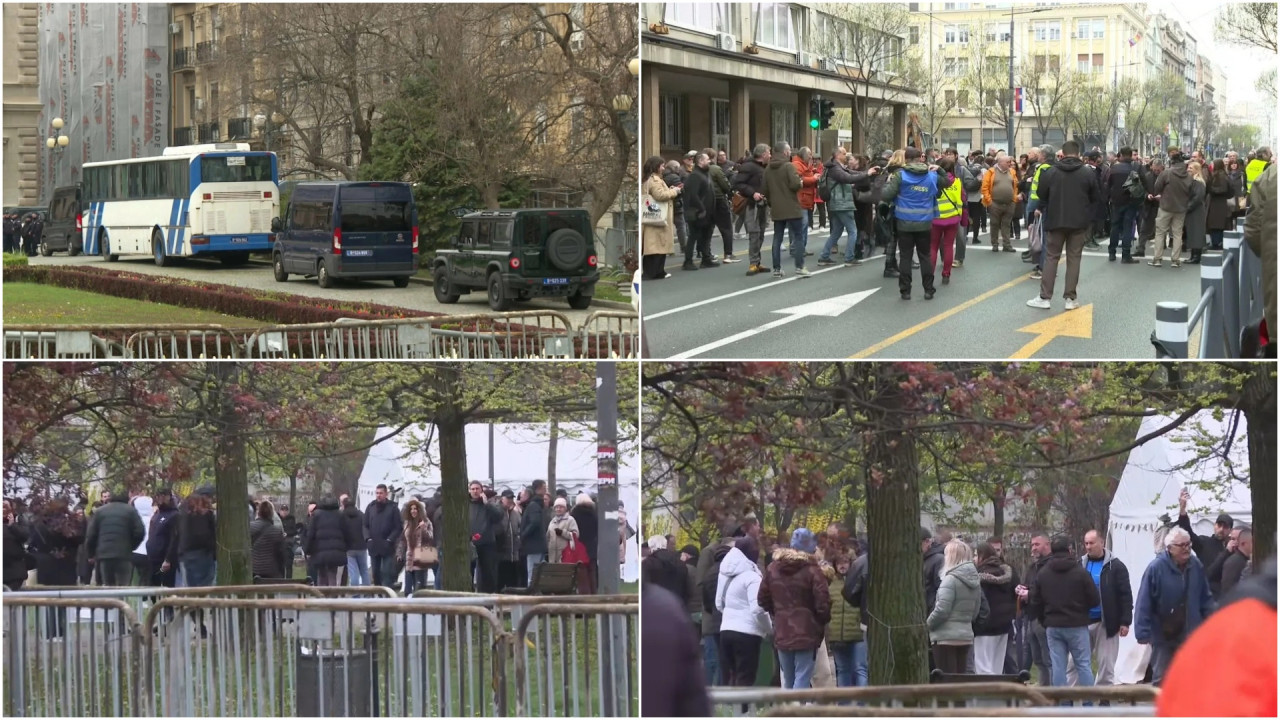 Iza ograde, sa strane Predsedništva, nalazilo se nekoliko policijskih kombija, a mogli su se videti i policajci kako ulaze u zgradu Predsedništva.