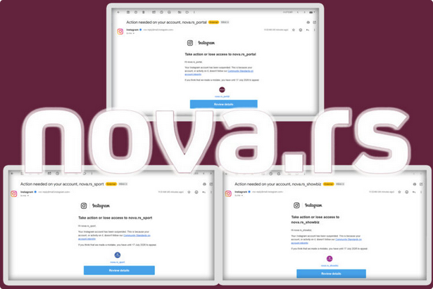 Danas oko 11.30 časova privremeno su suspendovani Instagram nalozi portala Nova.rs (nova.rs_portal, nova.rs_show i nova.rs_sport), kao i privatni nalog administratora navedenih profila, dok je Instagram nalog portala Radar trajno suspendovan.